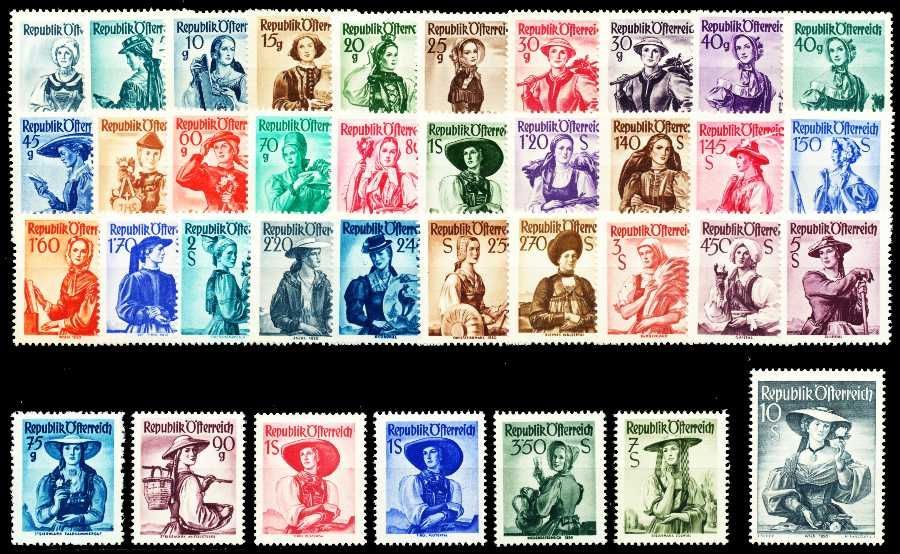Ausgabe Trachtenserie von 1948-1956, grau/gelbes Papier (37 Werte)