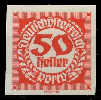 ÖSTERREICH PORTOMARKEN 1920 21 Nr 100 postfrisch 50 H Wert aus der Ausgabe Portomarken Ziffernzeichnung in rundem weißen Hintergrund, weißes Papier, geschnitten 0.55€ incl. MwSt: Differenzbesteuert zzgl. Versandkosten Bestell-Nr.: 74299E Katalog-Nr: MICHEL (100) Katalogpreis: 1 EUR Qualität: No