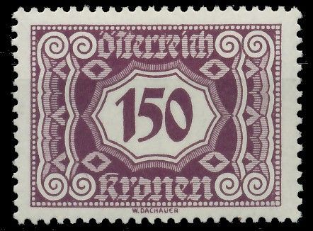 ÖSTERREICH PORTOMARKEN 1922 Nr 119 postfrisch 150 Kr Wert aus der Ausgabe Portomarken Ziffernzeichnung im Zehneck, Querformat 0.55€ incl. MwSt: Differenzbesteuert zzgl. Versandkosten Bestell-Nr.: 753CFE Katalog-Nr: MICHEL (119) Katalogpreis: 1 EUR Qualität: Normal Erhaltung: Postfrisch ** Einhe