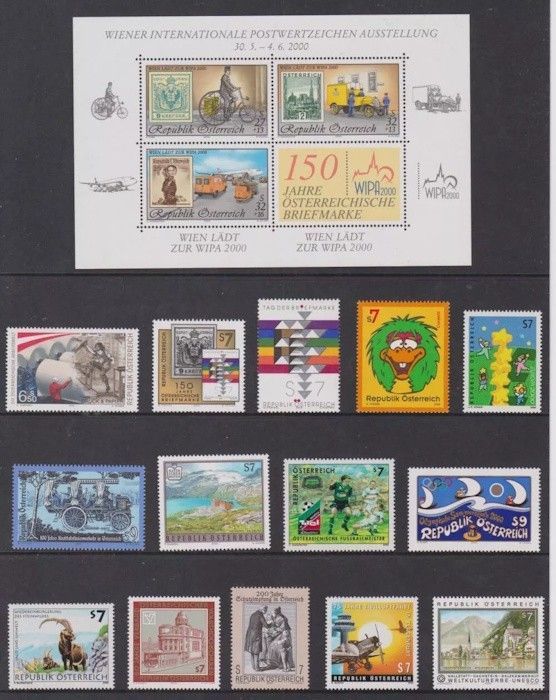 Österreich postfrisch Jahrgang 2000 ohne Block 13 siehe Bilder