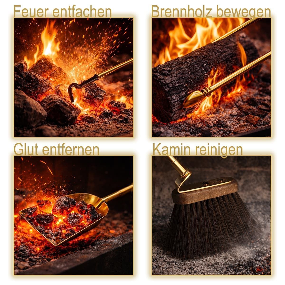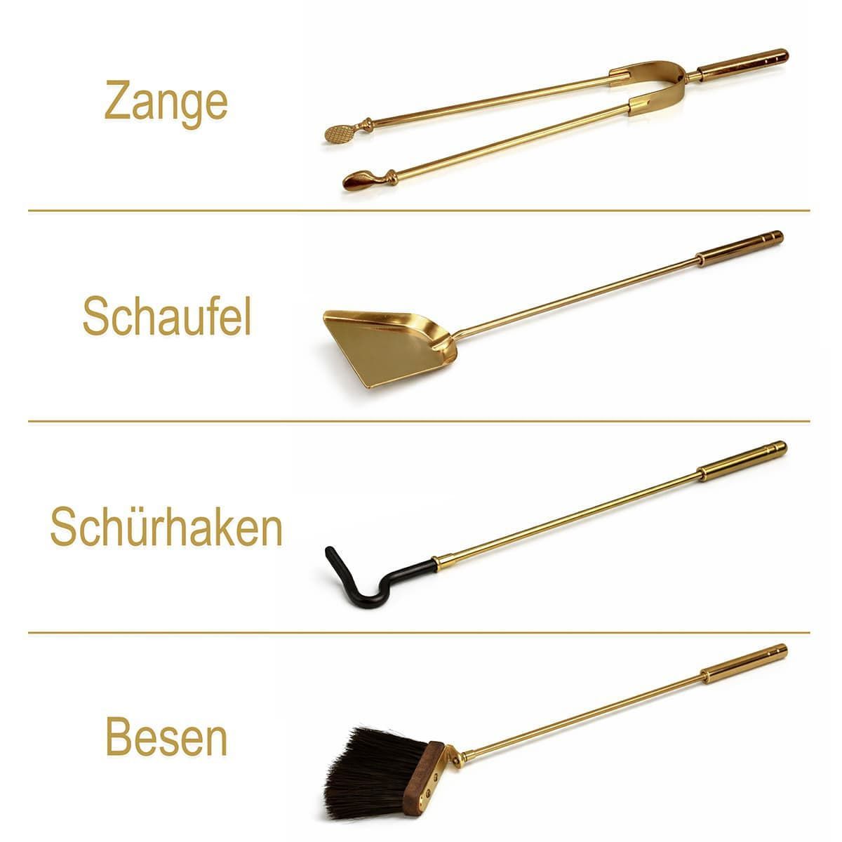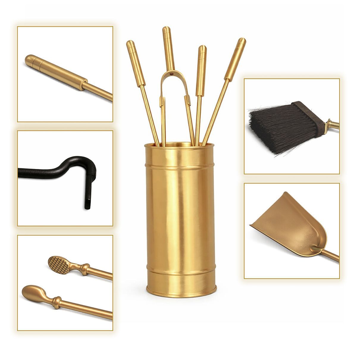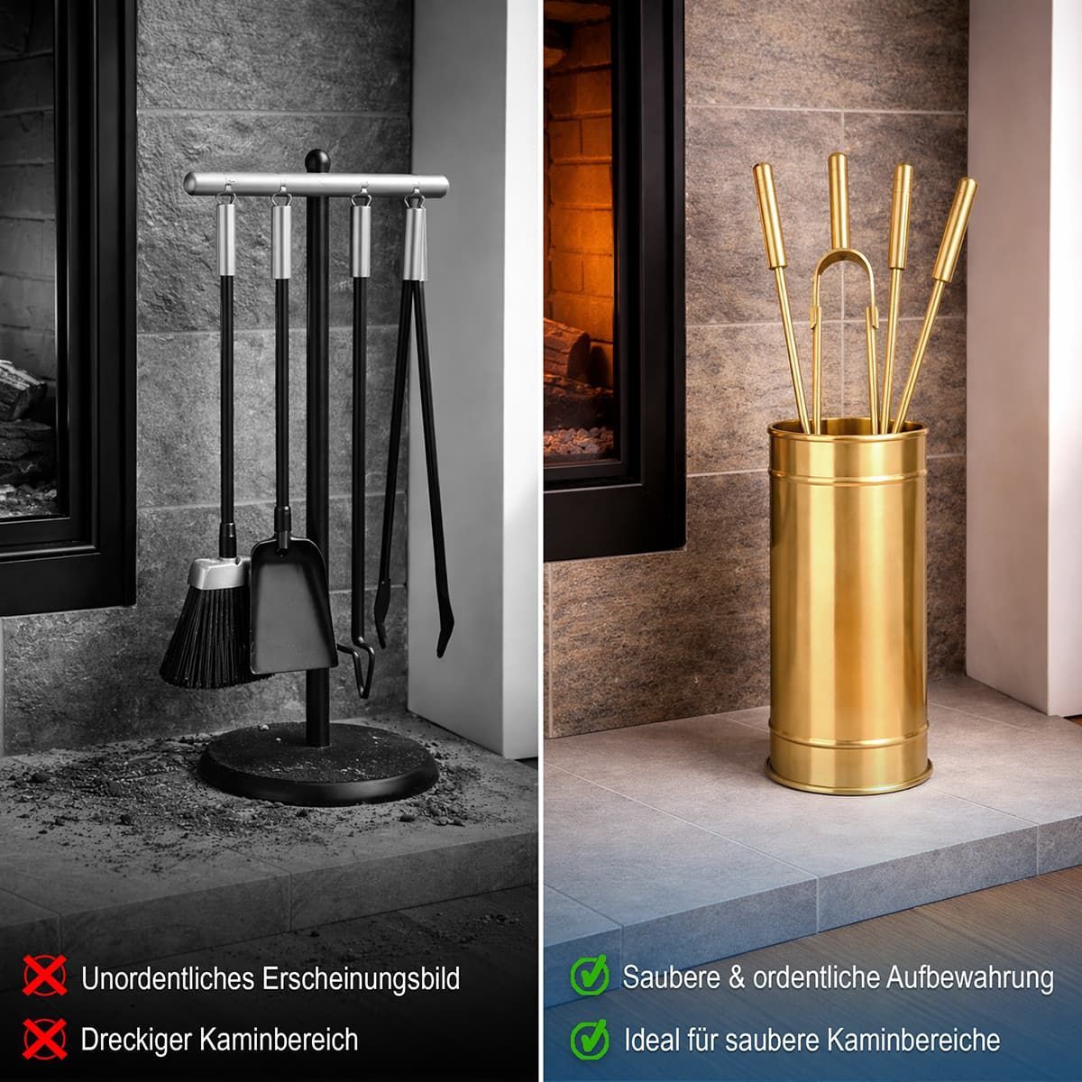 Ofenbesteck Messing gebürstet mit geschlossenem Behälter - Kaminbesteck Ofenset
