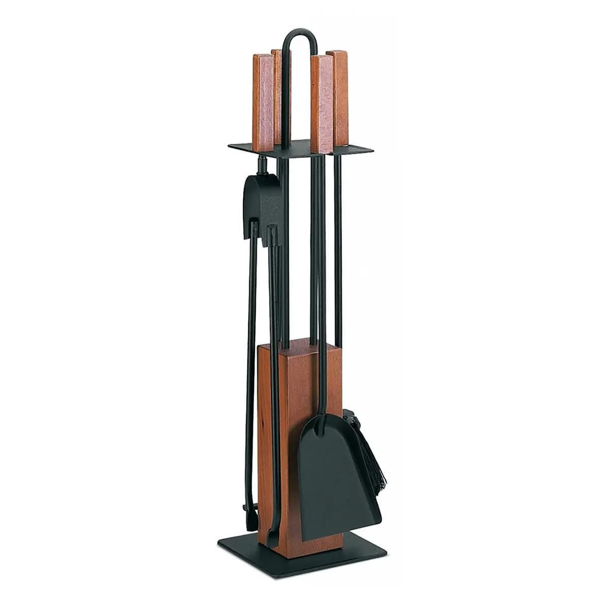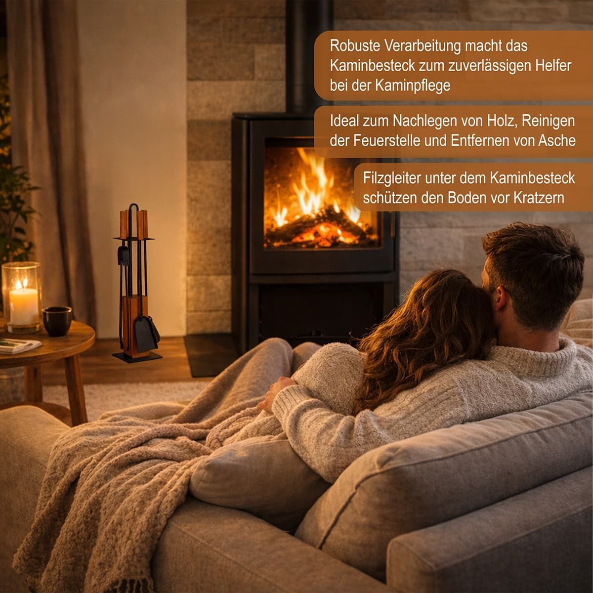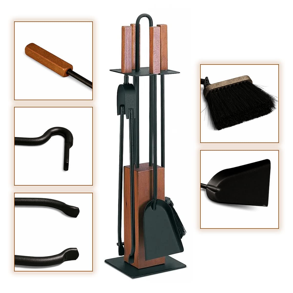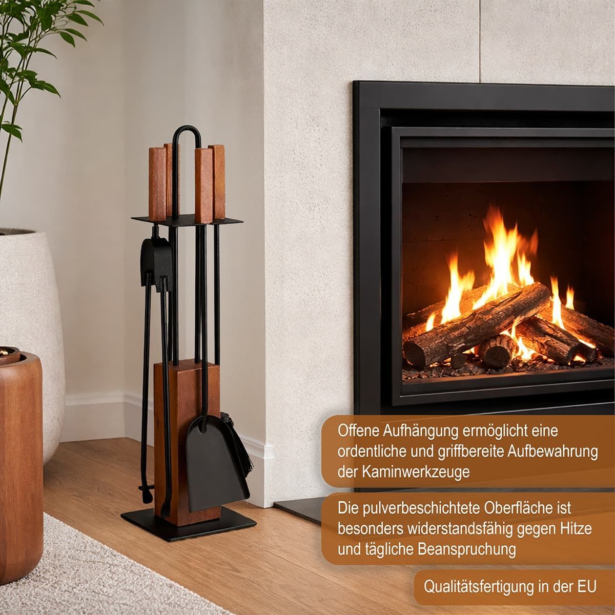 Ofenset Kaminbesteck Sockel & Griffe Eiche gedämpft Kamingarnitur Schwarz 5-tlg