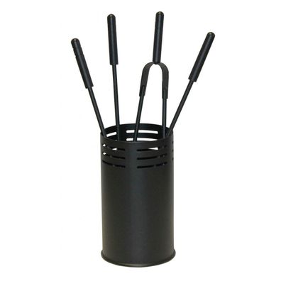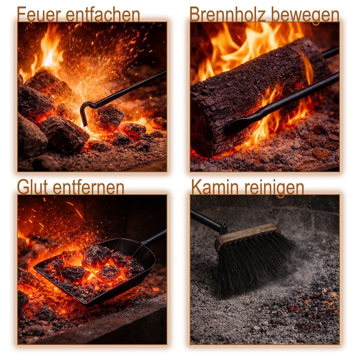 • Elegante Kamingarnitur Schwarz beschichtet Kaminbesteck 4-teilig Ofenset Ofenbesteck