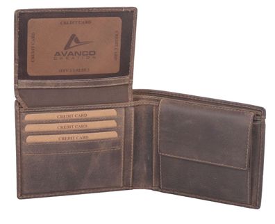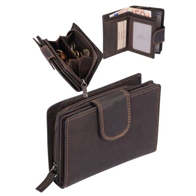 • Fettleder Kombibörse HUNTER, dunkelbraun, Ledergeldbörse Klarsichtfach