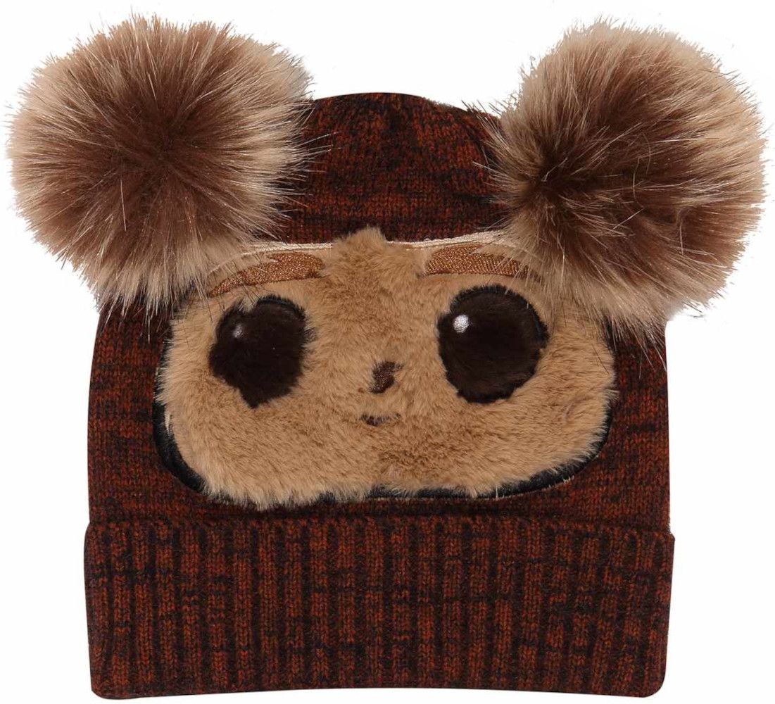 Star Wars Offizielle Star Wars Ewok Fluffy Face Beanie Mütze mit 2 Kunst Fellbommel und Flecce