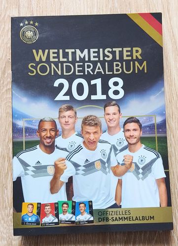 Offizielles DFB-Sammel - Album, Weltmeister - Sonderalbum 2018 komplett mit Stickern Das Bild zeigt das Weltmeister Sonderalbum 2018, ein offizielles DFB-Sammelalbum, das im Rahmen einer Aktion von REWE zur Fußball-Weltmeisterschaft 2018 veröffentlicht wurde. Details zum Sammelalbum Thema: Das Album