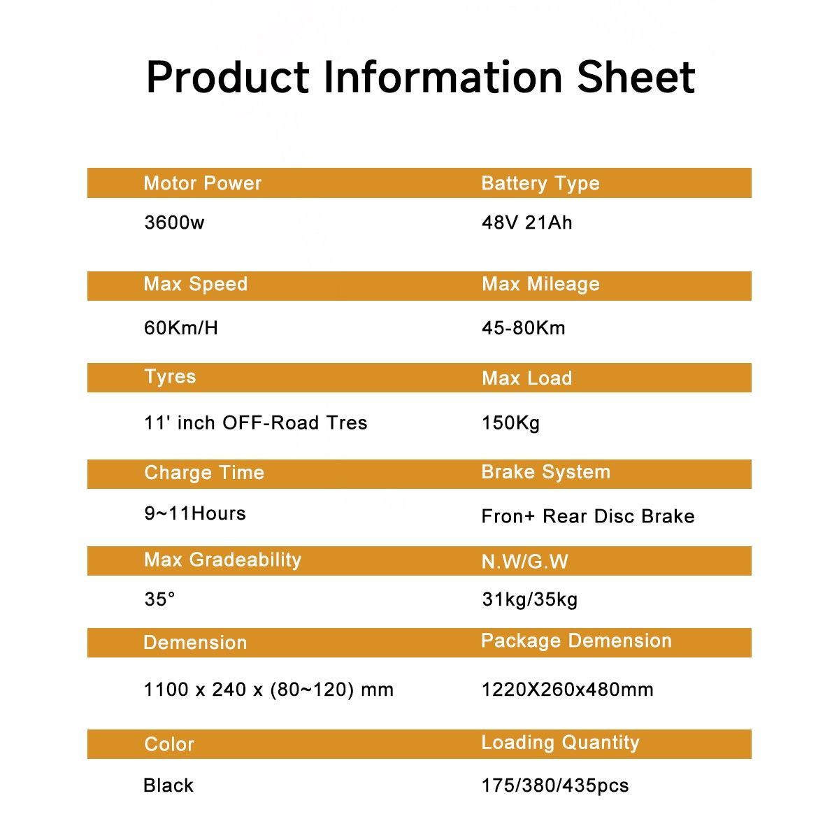 Dieser Hochleistungs-Elektroroller mit 3600W Gesamtleistung bietet: Extremen Fahrspaß für Offroad-Enthusiasten Hervorragende Geländegängigkeit Robuste Bauweise für anspruchsvolle Nutzung Kompaktes Design für wendiges Fahrverhalten