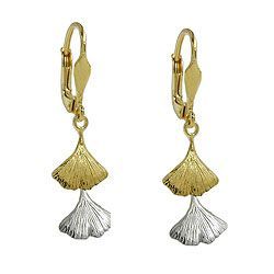Gallay Ohrbrisur Ohrhänger Ohrringe 34x9mm Ginkgo-Blatt bicolor 9Kt GOLD