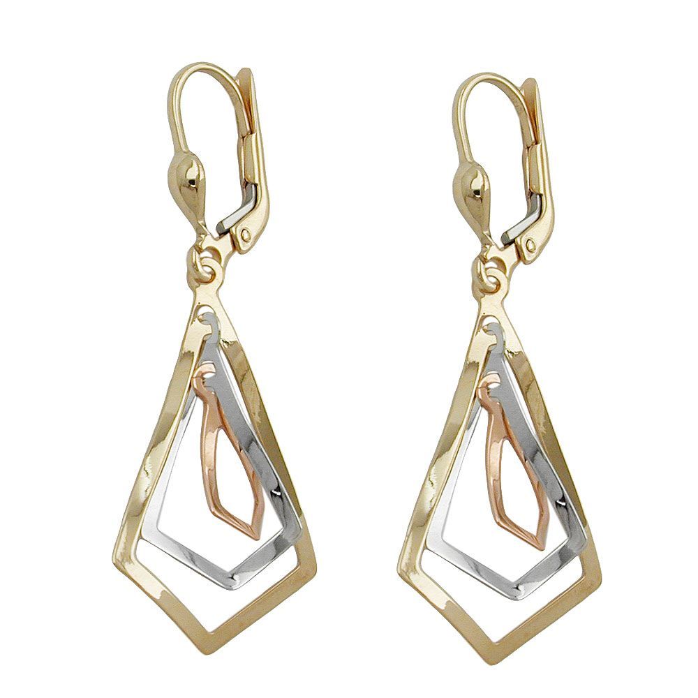Gallay Ohrbrisur Ohrhänger Ohrringe 40x16mm 3 Rhomben tricolor 9Kt GOLD