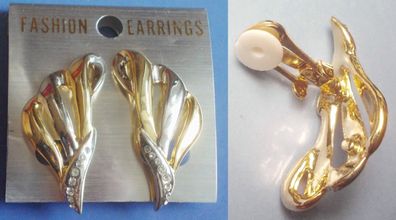• Ohrclips Ohrringe gold- silberfarben STRASS-STEINE fächerförmig Ungetragen