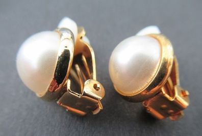 • NEU: 1 Paar Ohr Clips Ohrringe mit halber weißer Perle gold Ø 1,1 cm Modeschmuck