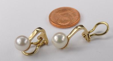 • Ohrringe Ohrclips Clips Akoja Perle 585 Gold
