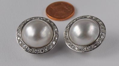• Weißgold Ohrringe Ohrclips Mabe Perle Diamant Brillant 1.68 Carat IF 585 Gold