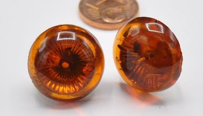 • Ohrringe Ohrclips groß Clips Bernstein Amber Button Knöpfe 333 Gold