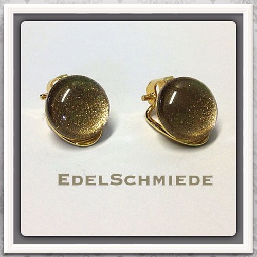 Ohrclips 925/- verg. mit Glascabochon Goldglitter 12mm