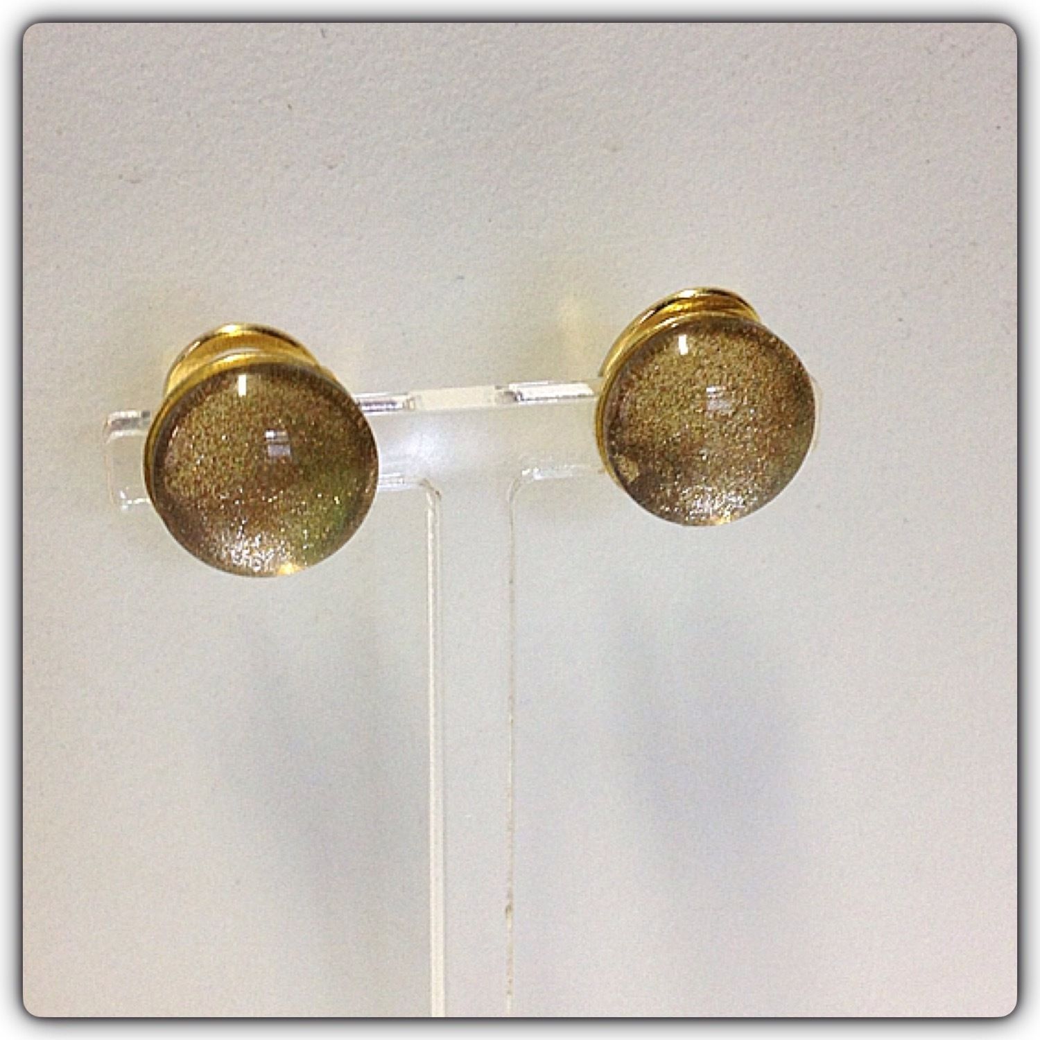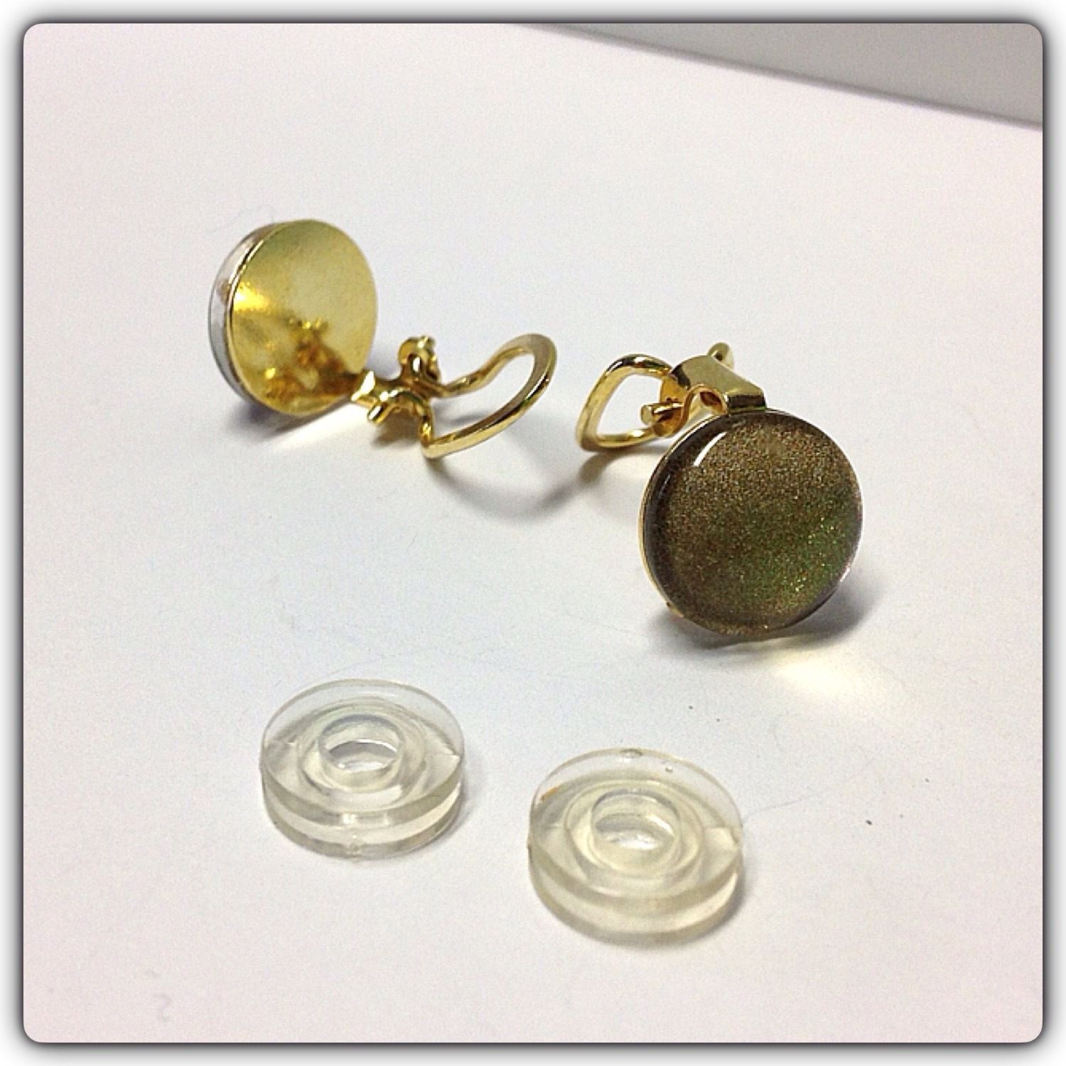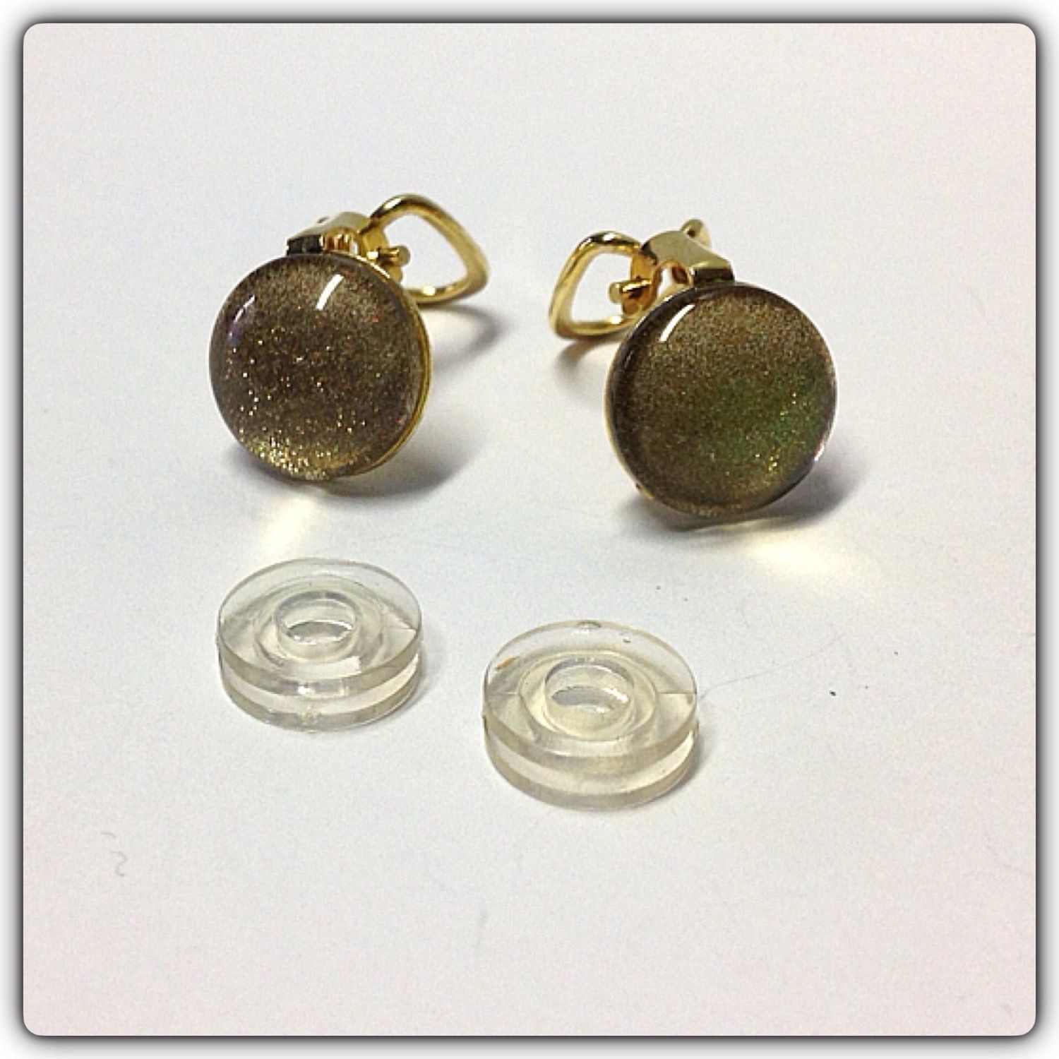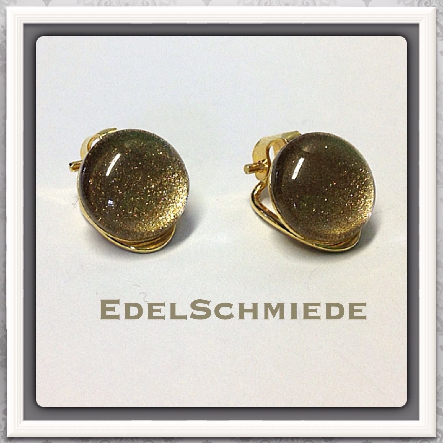 Ohrclips 925/- verg. mit Glascabochon Goldglitter 12mm