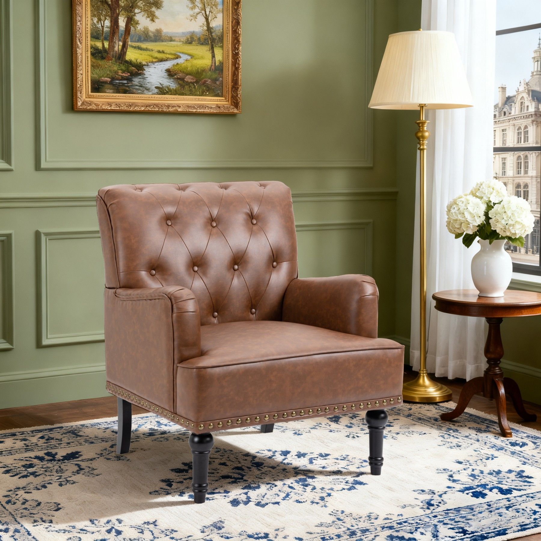 Ohrensessel aus PU-Leder, klassischer Polstersessel mit Holzbeinen, bis 150 kg