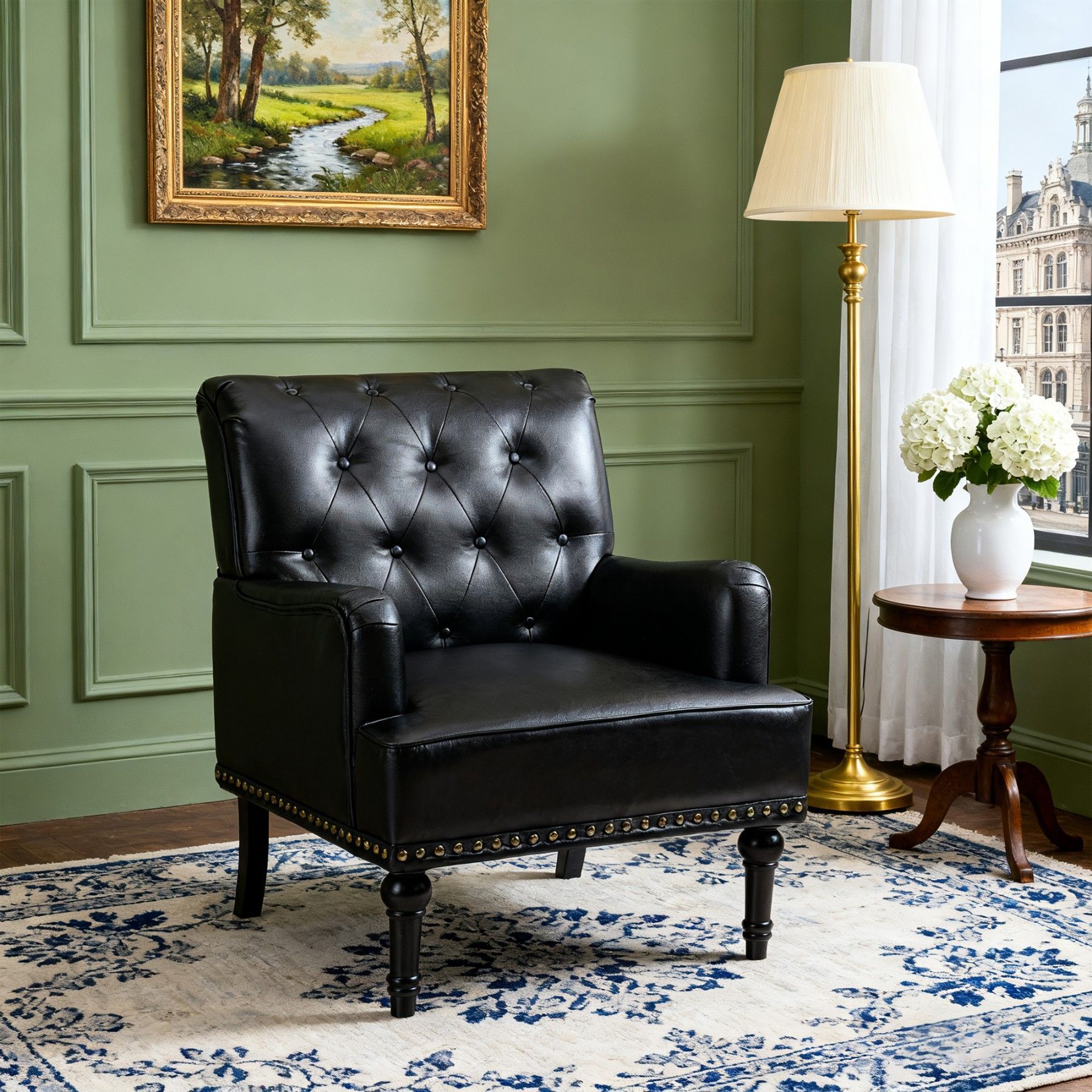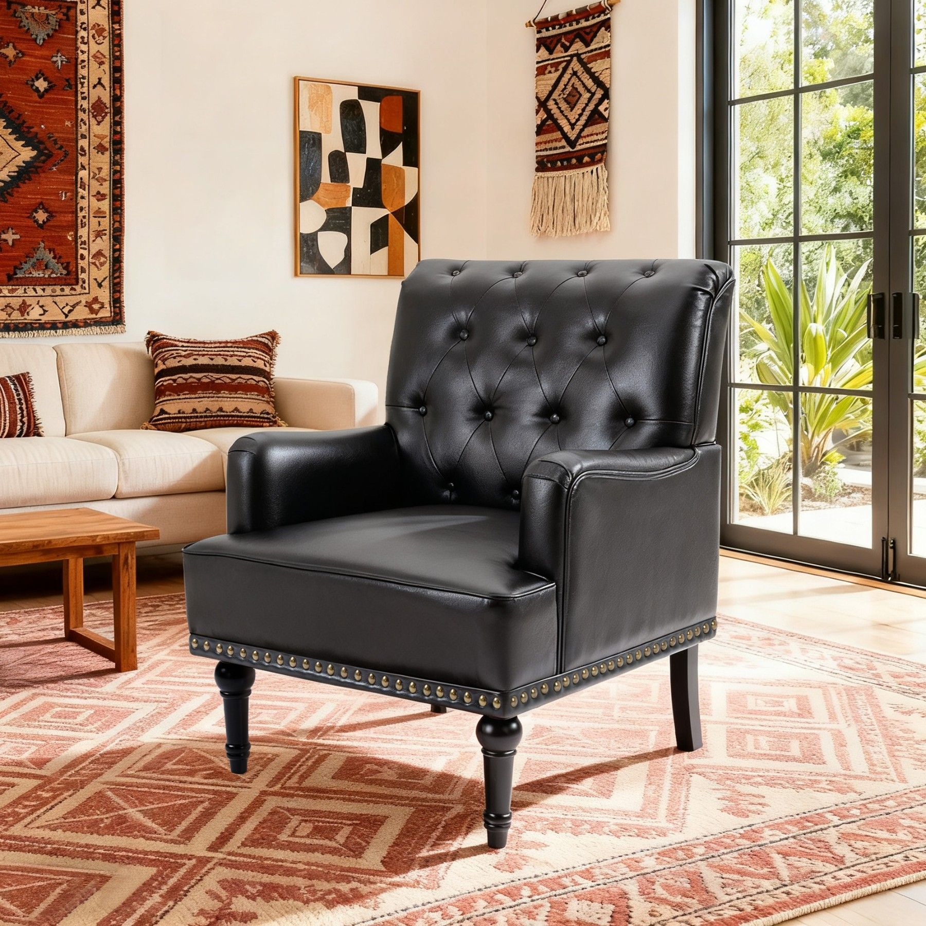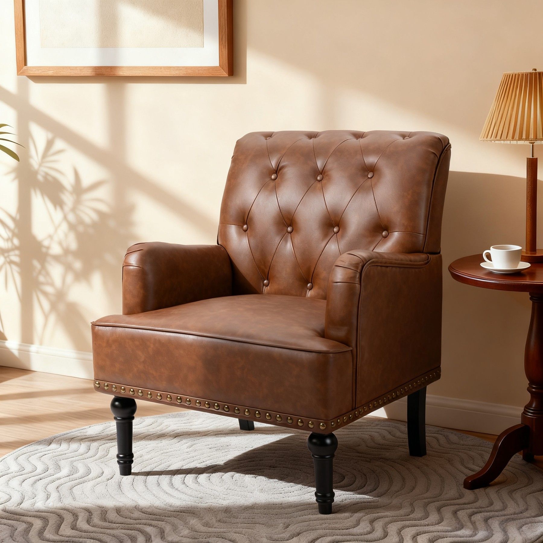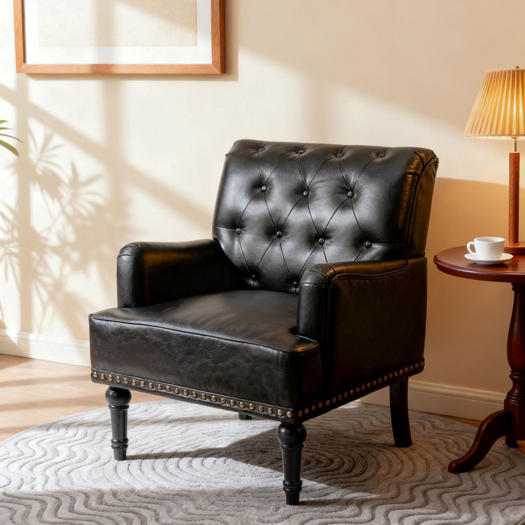 Dieser elegante Loungesessel aus PU-Leder kombiniert Stabilität, Komfort und Retro-Design. Mit hoher Rückenlehne, ergonomischer Polsterung und dekorativen Nieten ist er sowohl als Wohnzimmersessel, Relaxsessel oder Clubsessel vielseitig einsetzbar und verleiht jedem Raum stilvollen Charme.