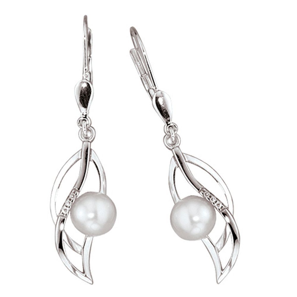 Ohrhänger 585 Gold Weißgold 2 Süßwasser Perlen 6 Diamanten Brillanten Ohrringe