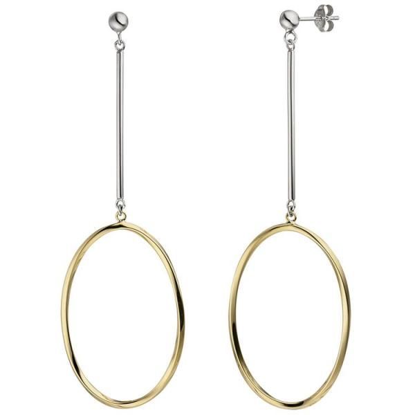JOBO Ohrhänger 925 Silber bicolor teilvergoldet Ohrringe Ohrstecker