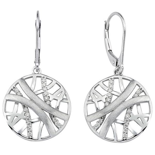 JOBO Ohrhänger 925 Silber mattiert 32 Zirkonia Ohrringe Boutons