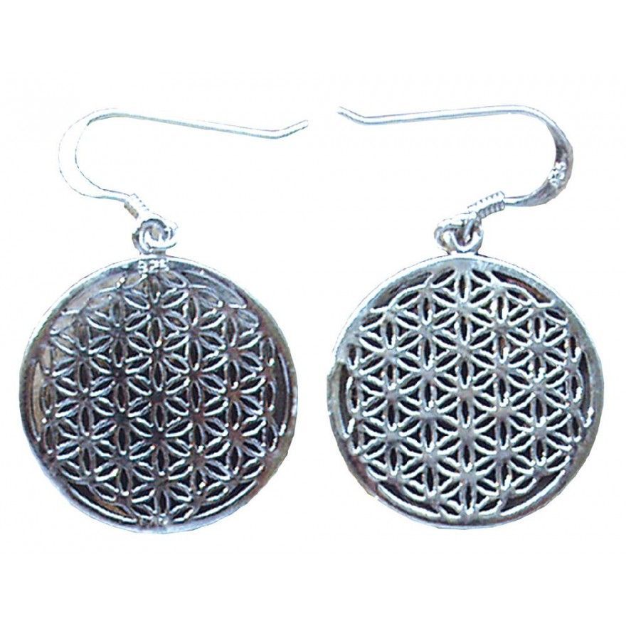 Saraswati Ohrhänger BLUME DES LEBENS Messing versilbert Ohrring Ohrstecker Symbolschmuck