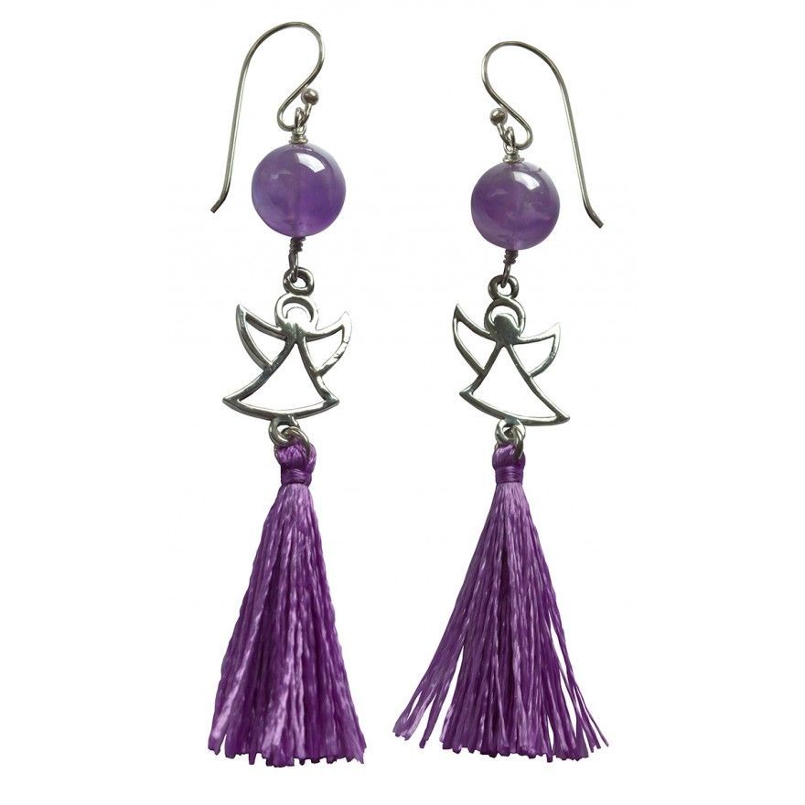 Saraswati Ohrhänger ENGEL Amethyst 925er Sterling Silber Ohrring Ohrstecker Ohrschmuck