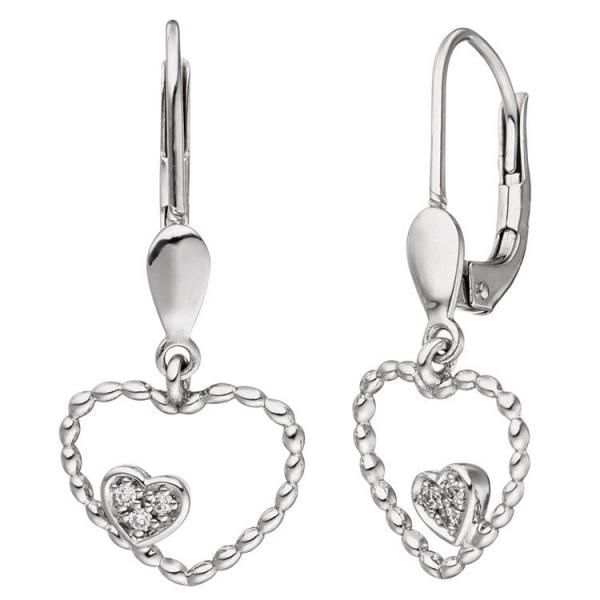 JOBO Ohrhänger Herz 585 Gold Weißgold 6 Diamanten Brillanten 0,03 ct