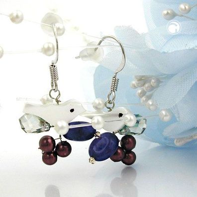 • Ohrhaken Ohrhänger Ohrringe 35x19mm kleiner Vogel mit Glasperlen