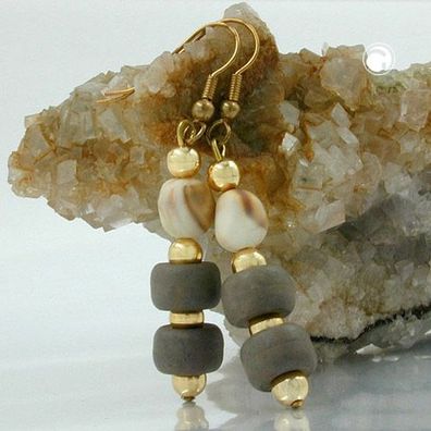 • Ohrhaken Ohrhänger Ohrringe 45mm Perlen in grün und braun Kettchen goldfarben
