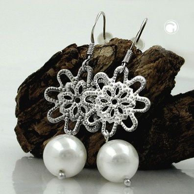 • Ohrhaken Ohrhänger Ohrringe 45mm Blume mit Glasperle weißwachs