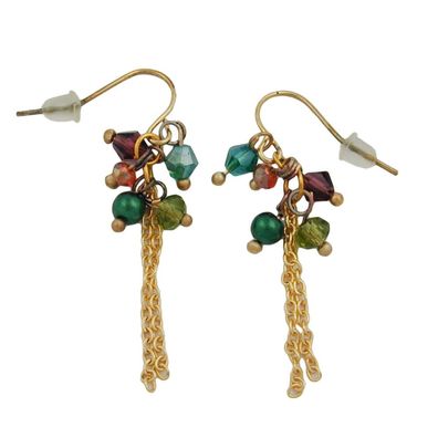 • Ohrhaken Ohrhänger Ohrringe 55mm mit goldfarbenen Blatt und vielen bunten Perlen