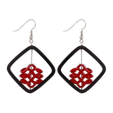 • Ohrhaken Ohrhänger Ohrringe Viereck gewellt rot-schwarz-marmoriert