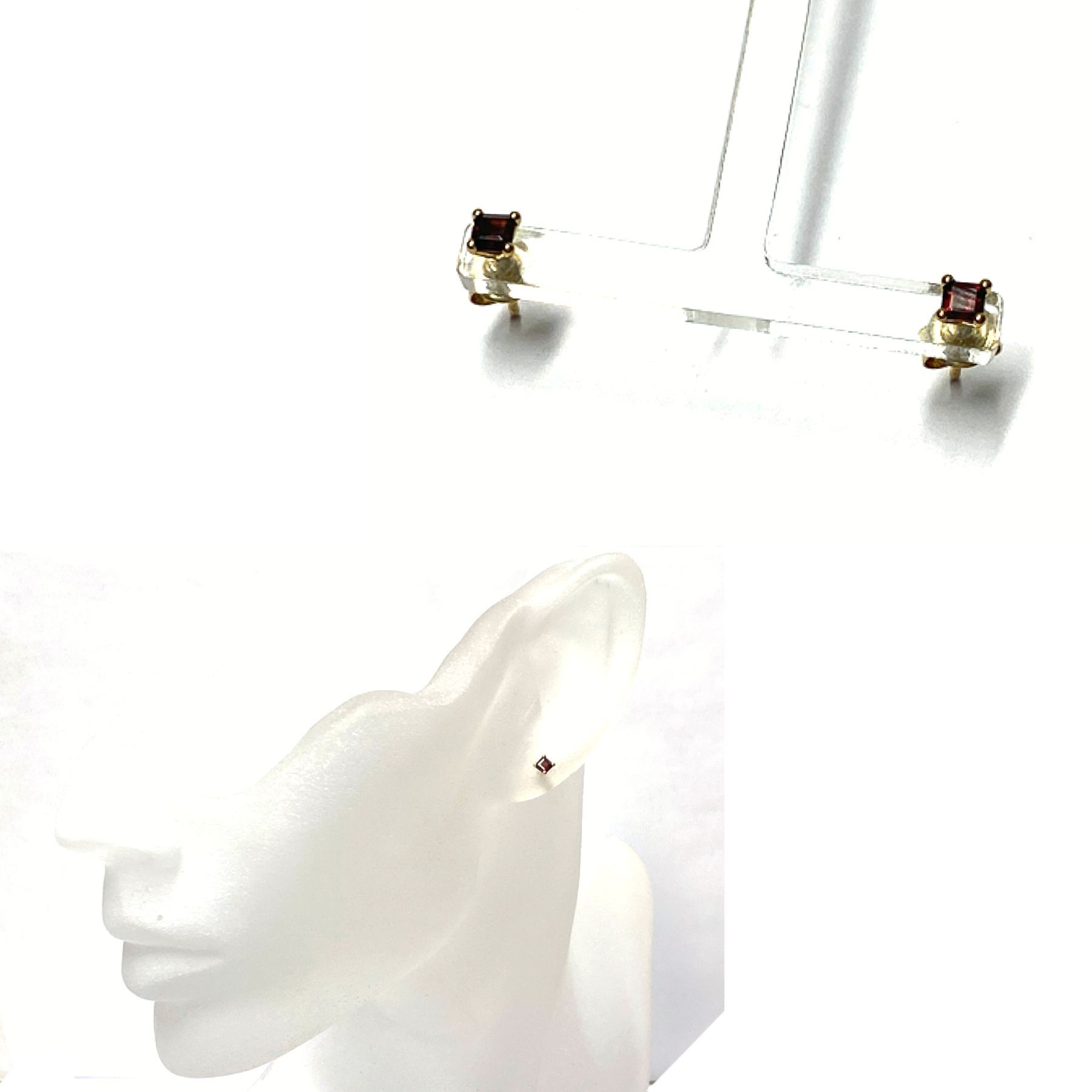 Ohrirng 333 Gold Granat quadratisch facettiert 3 x 3mm Ohrstecker