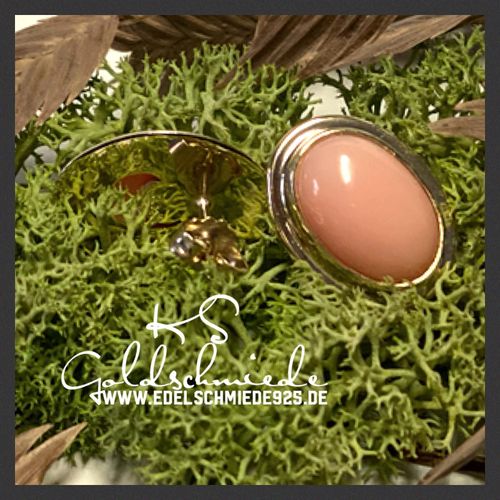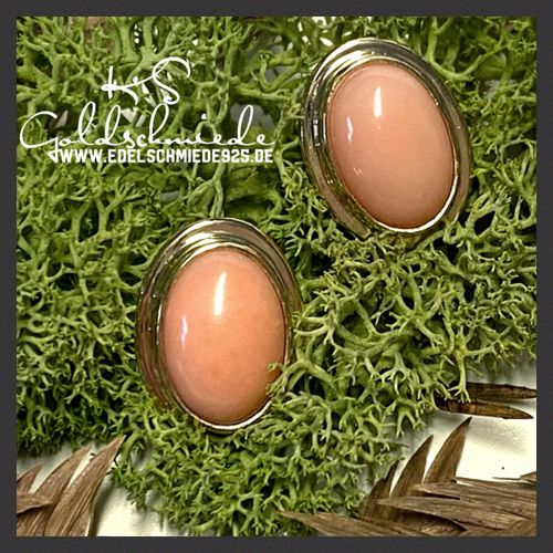 Ohrring 333/- Gold Gelbgold PinkOpal (Andenopal) oval Perle Ohrstecker Handarbeit