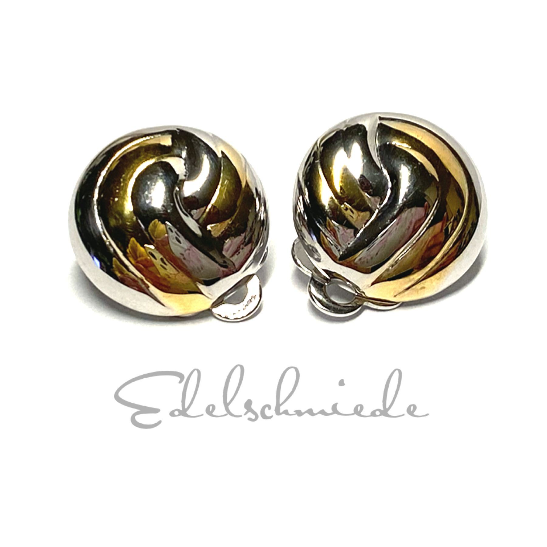 Ohrring 925 Silber bicolor Glanz Ohrclip Klips runde Form