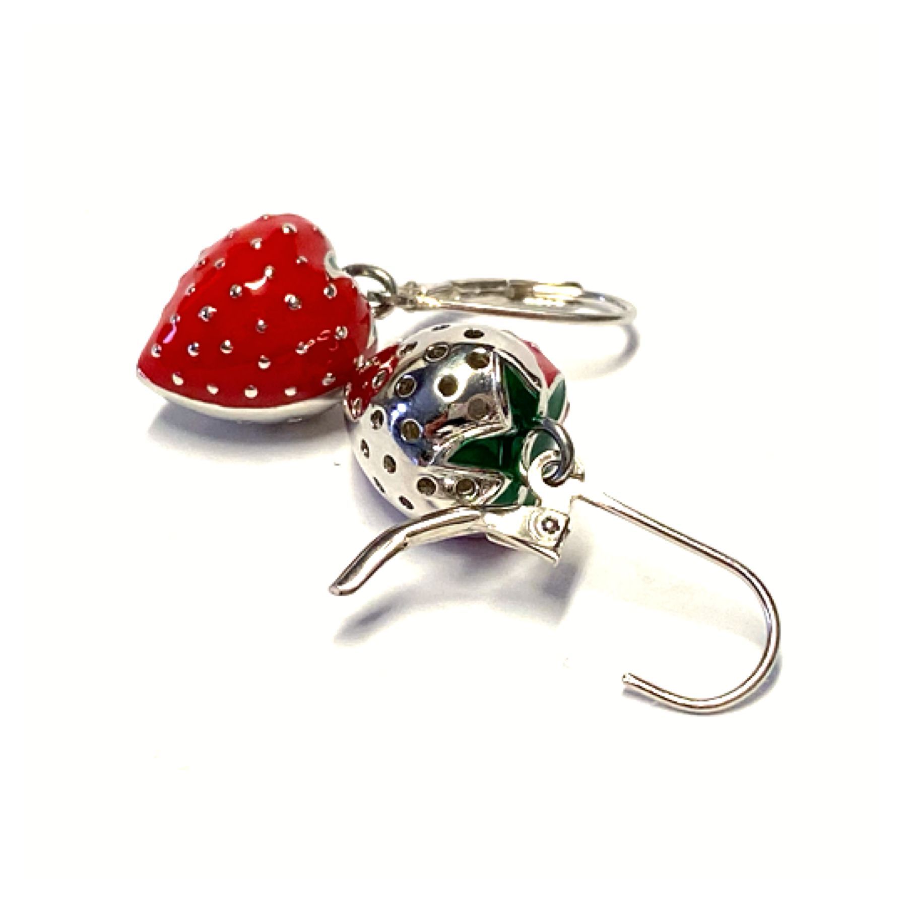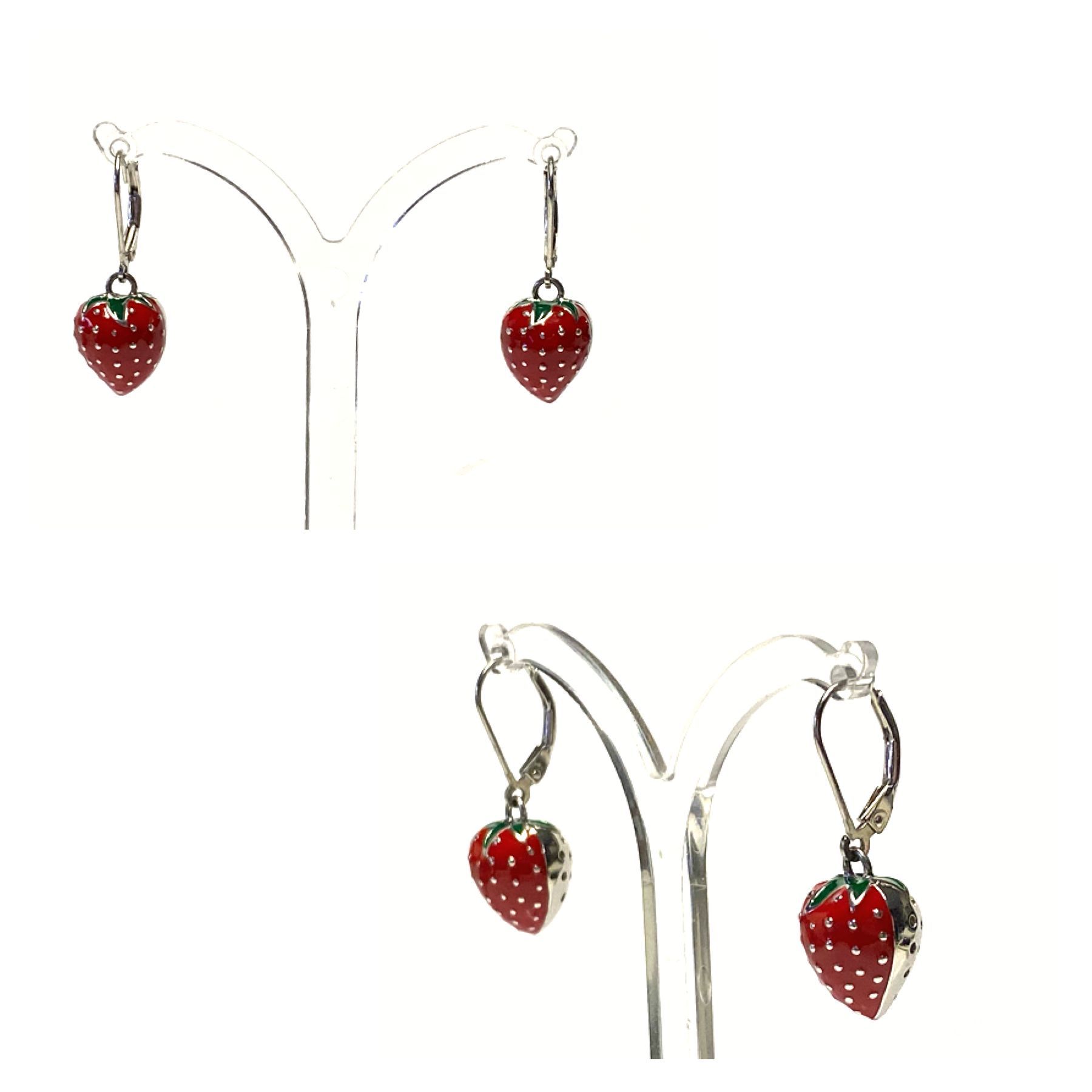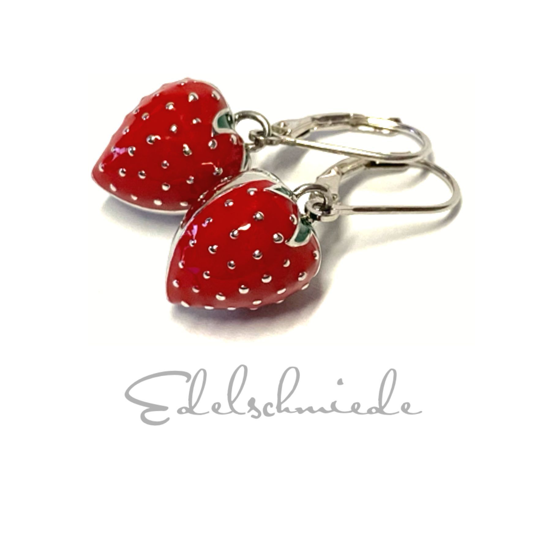 Ohrring 925/- Silber rhodiniert Erdbeere rot Ohrhänger farbig Lack