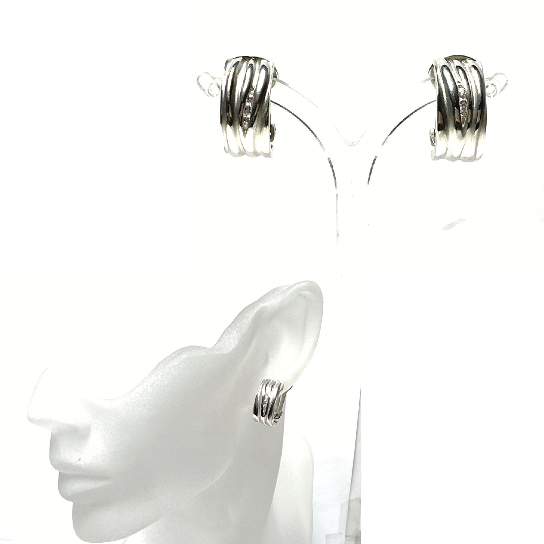 Ohrring 925 Silber rhodiniert Zirkonia Ohrclip Klips teilweise matt