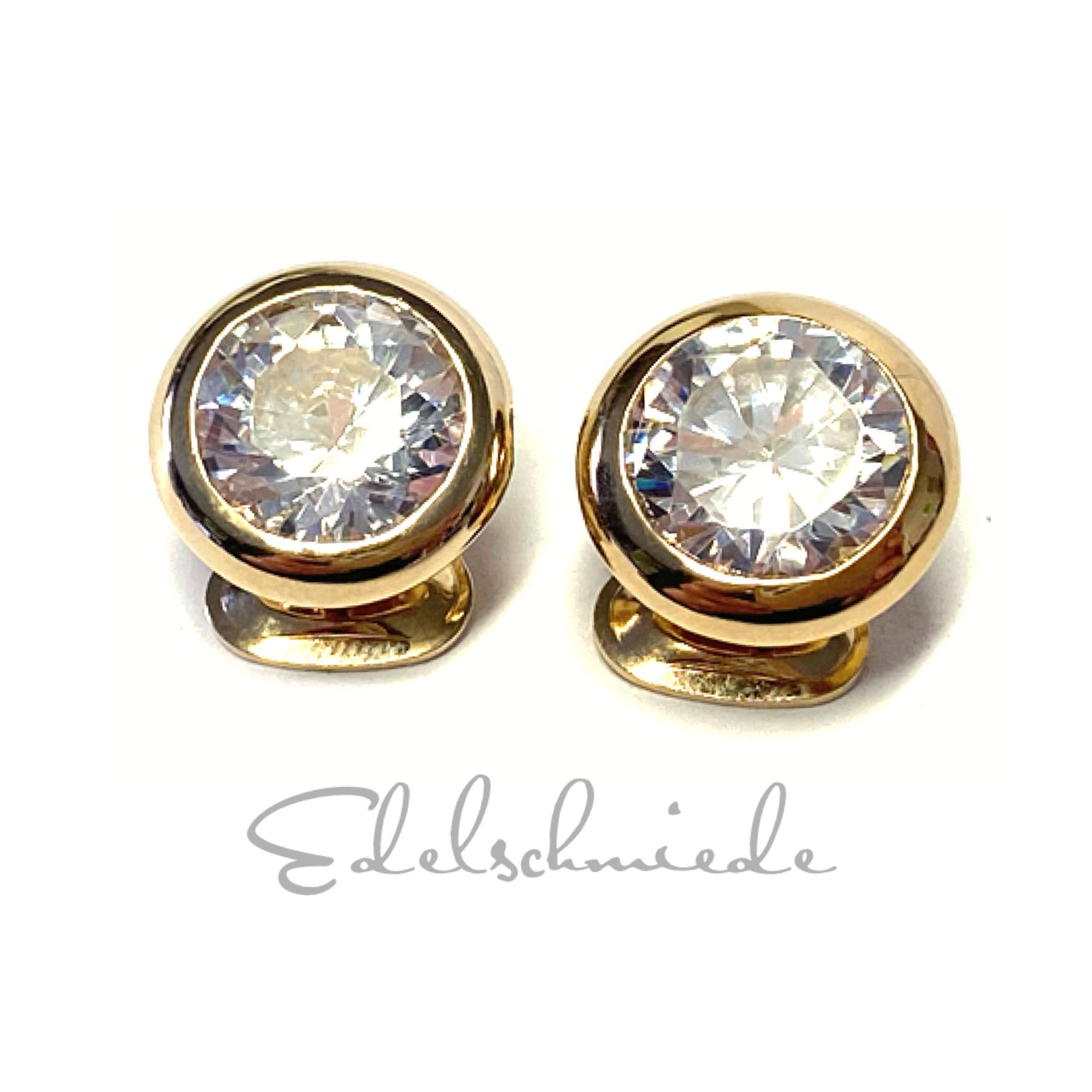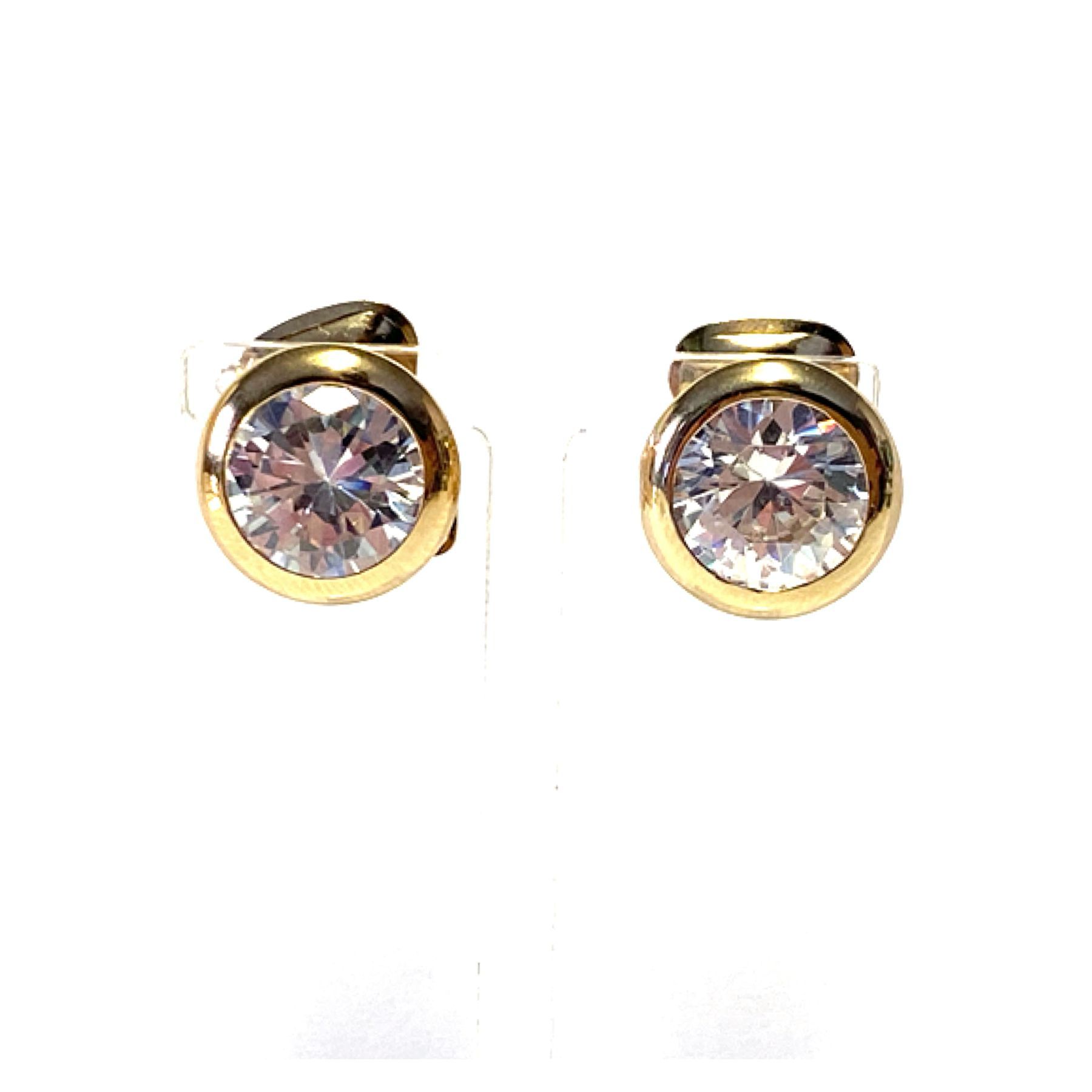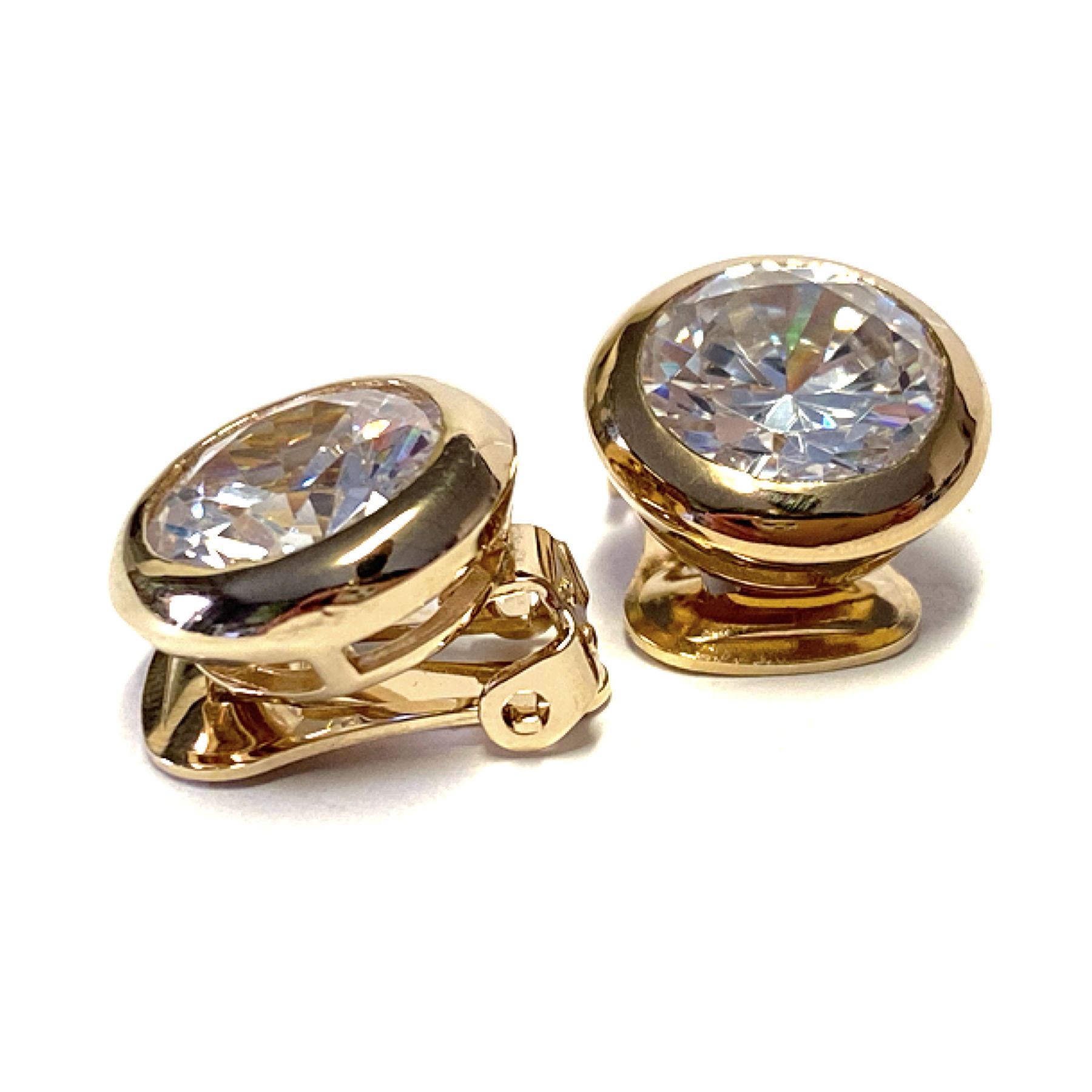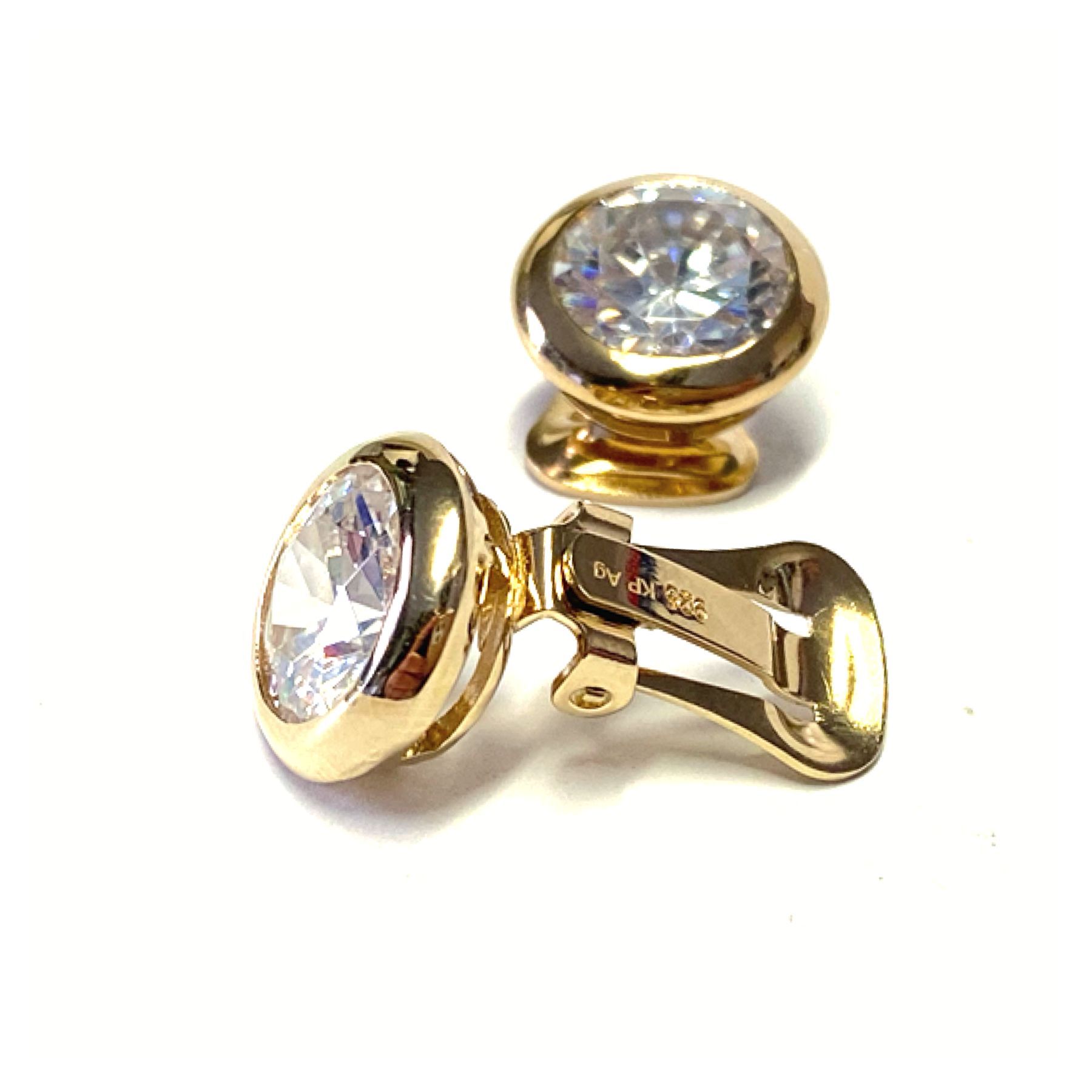Ohrring 925 Silber vergoldet Ohrclip Klips - Zirkonia 15mm
