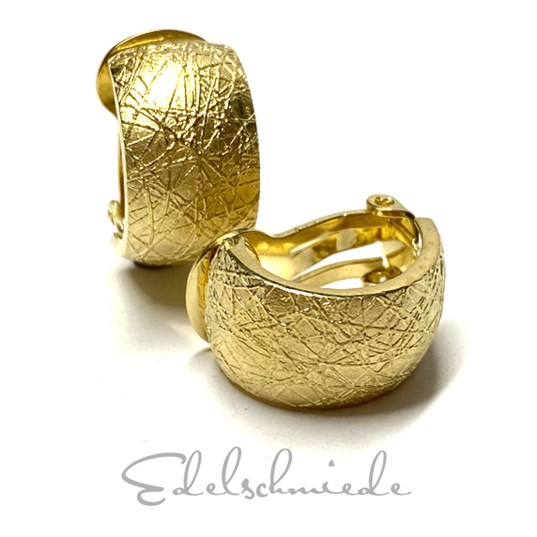 Ohrring 925 Silber vergoldet Struktur matt Ohrclip Klips Halbcreole modern