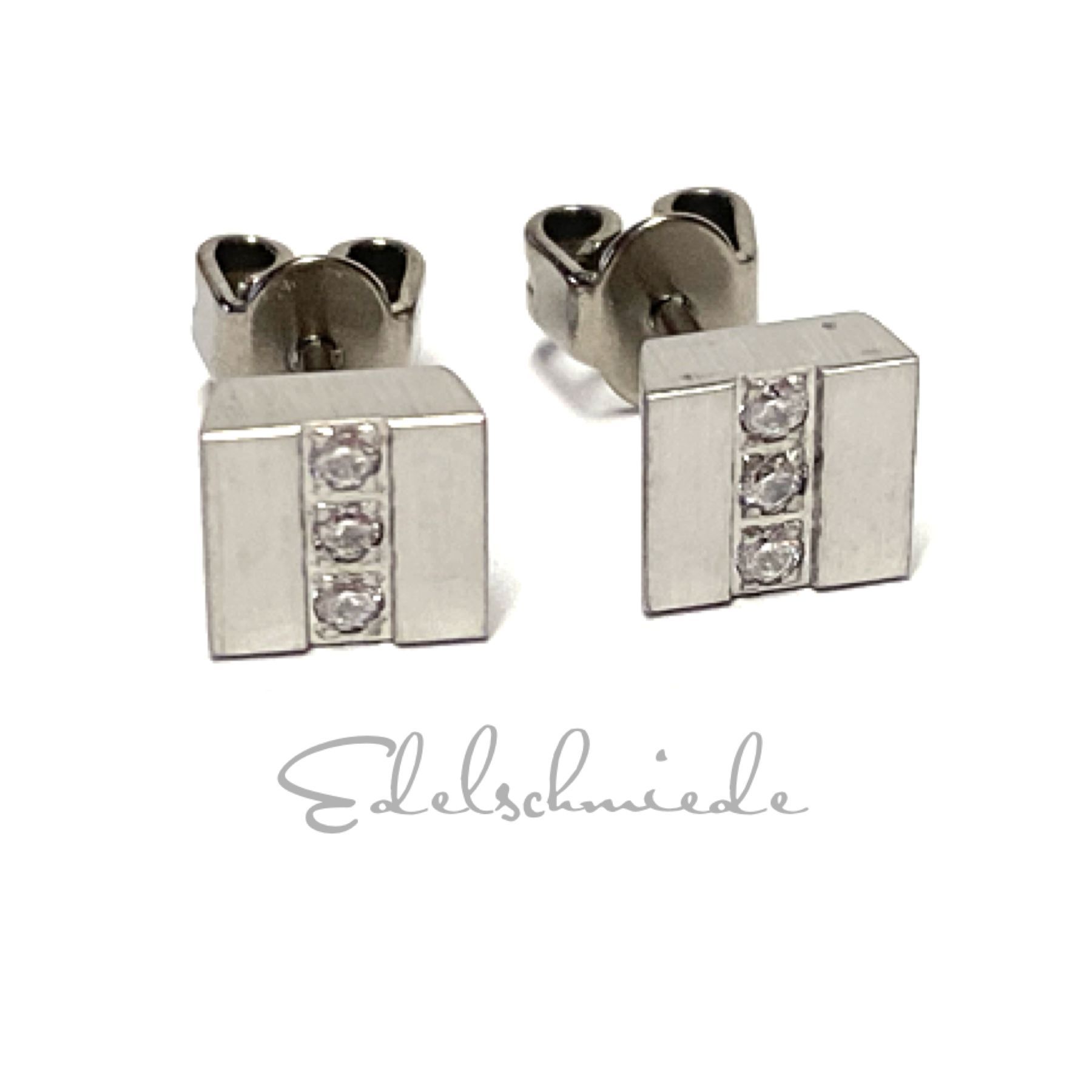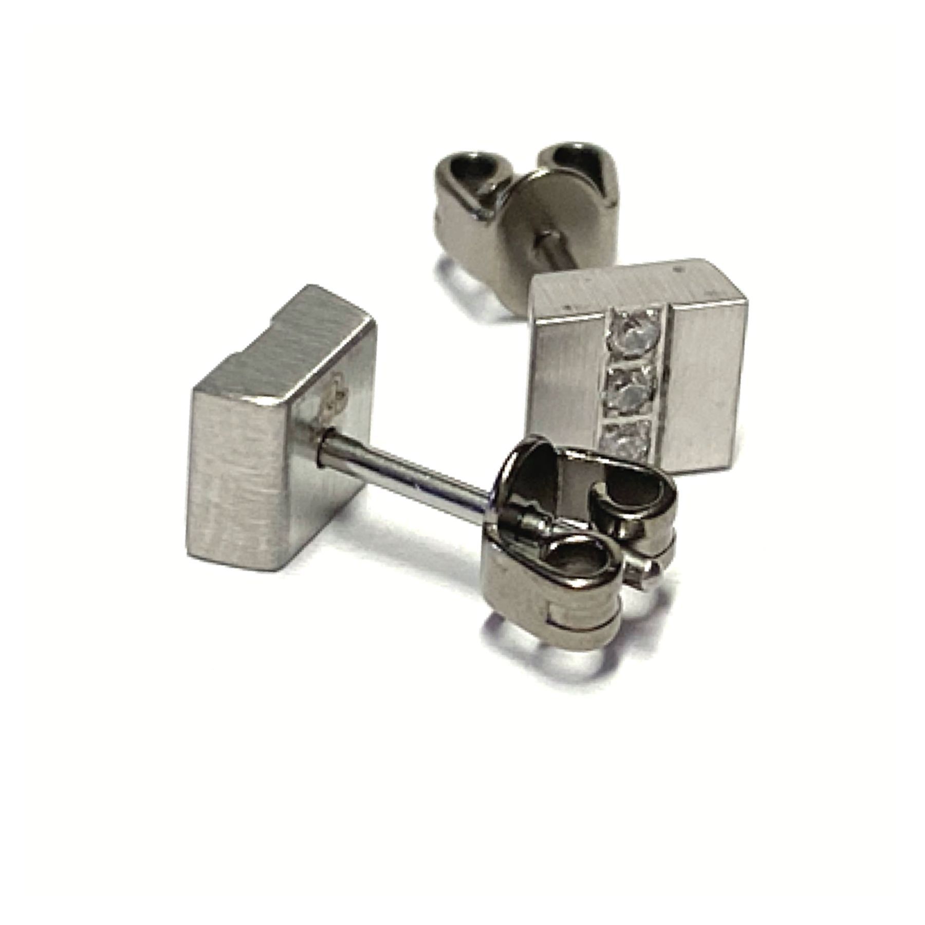 Ohrring Edelstahl matt Zirkonia eckig quadrat Ohrstecker