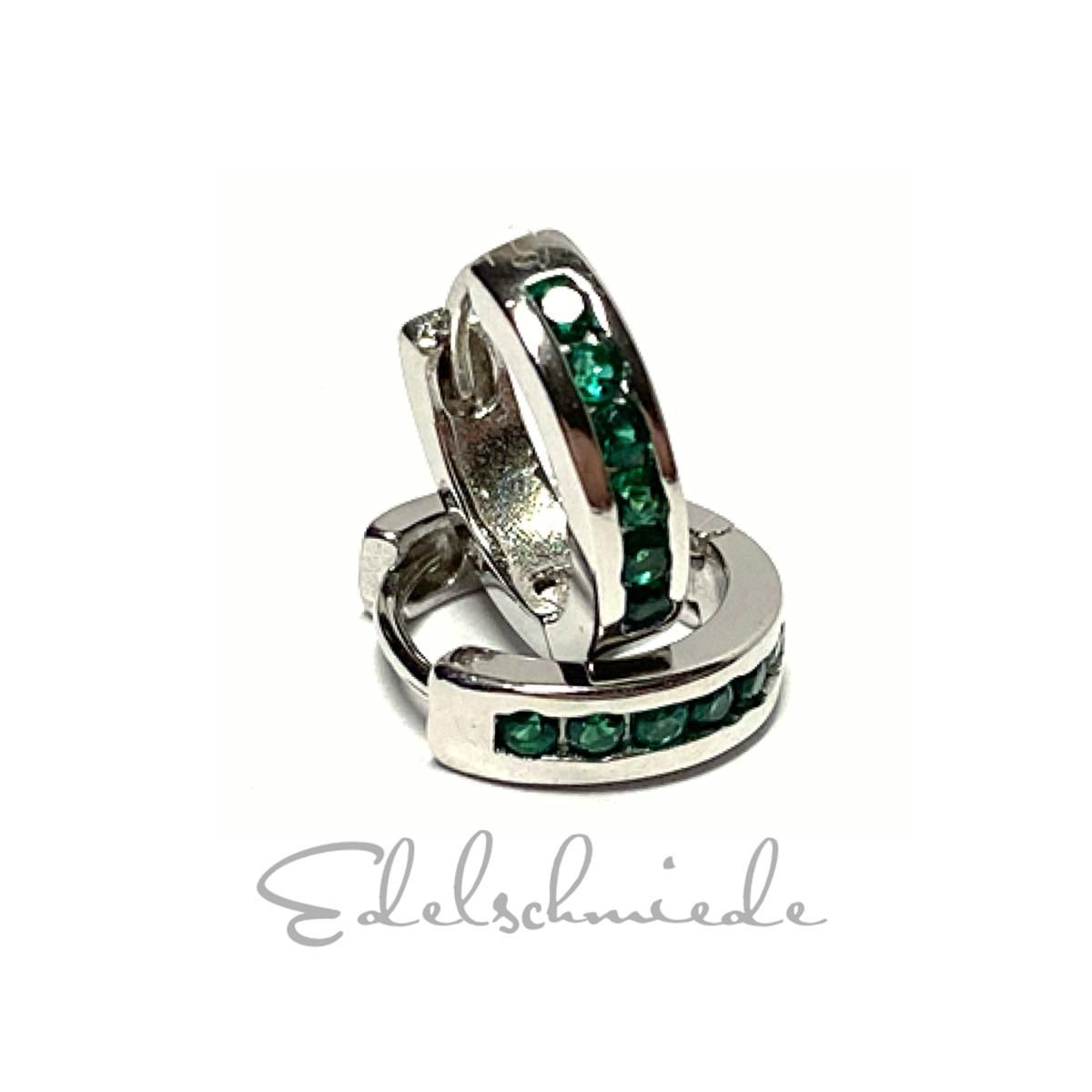 Ohrringe Creolen 925 Silber rhod. Zirkonia grün 14 mm
