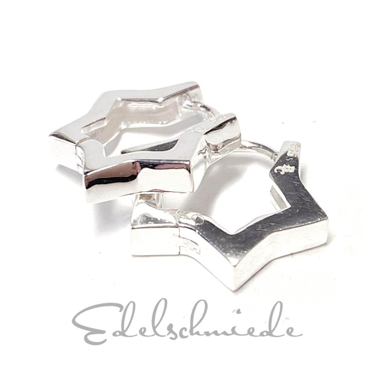 Ohrringe feine Scharniercreole in Sternform 925/- sterling Silber poliert