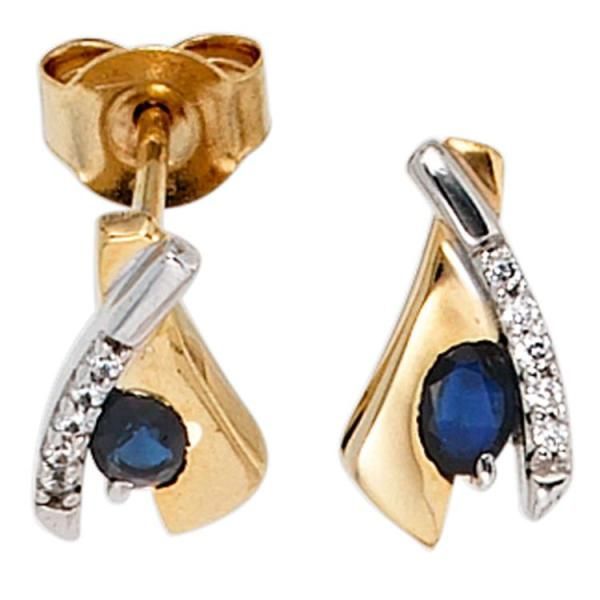 JOBO Ohrstecker 333 Gelbgold bicolor 10 Zirkonia 2 Saphire blau Ohrringe