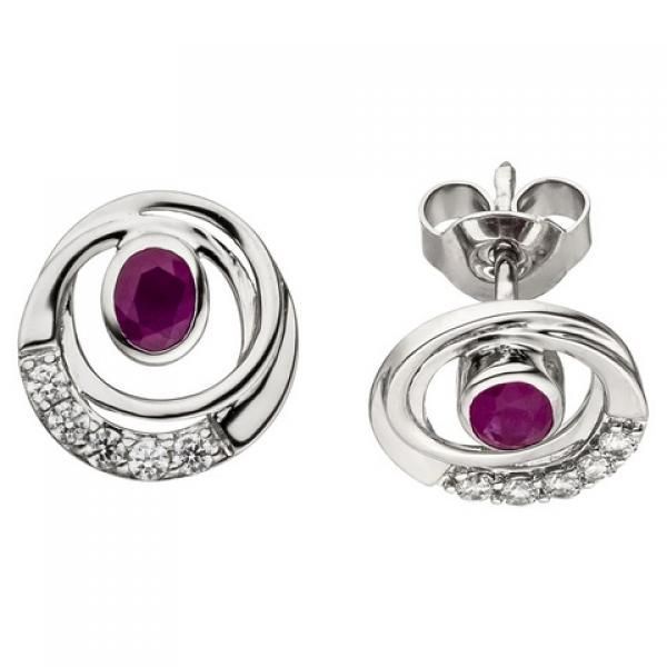 JOBO Ohrstecker 375 Gold Weißgold 10 Zirkonia 2 Rubine Ohrringe Rubinohrringe