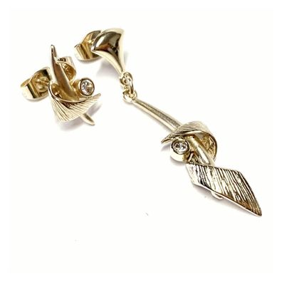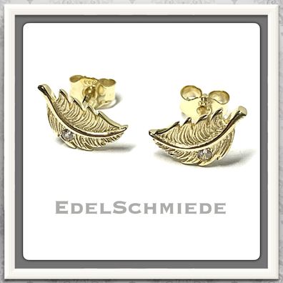 • Ohrstecker Feder in 333/- Gelbgold mit Zirkonia
