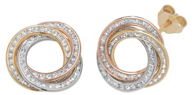 • Ohrstecker 585 Gold Weißgold Rotgold bicolor 18 Diamanten Brillanten