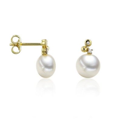 JOBO Ohrstecker 585 Weißgold 2 Süßwasserperlen 2 Diamanten Brillanten