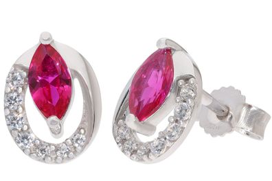 • trendor Schmuck Damen-Ohrringe Weißgold 333 Ohrstecker mit synthetischem Rubin 21178
