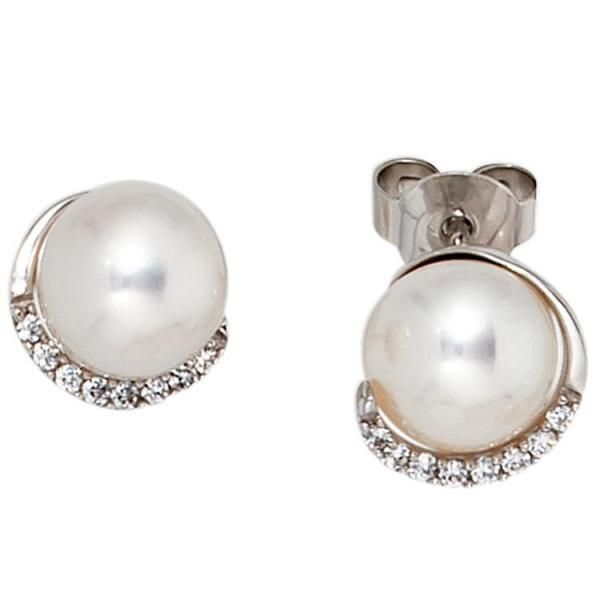 JOBO Ohrstecker 585 Weißgold 2 Süßwasserperlen Perlen 16 Diamanten